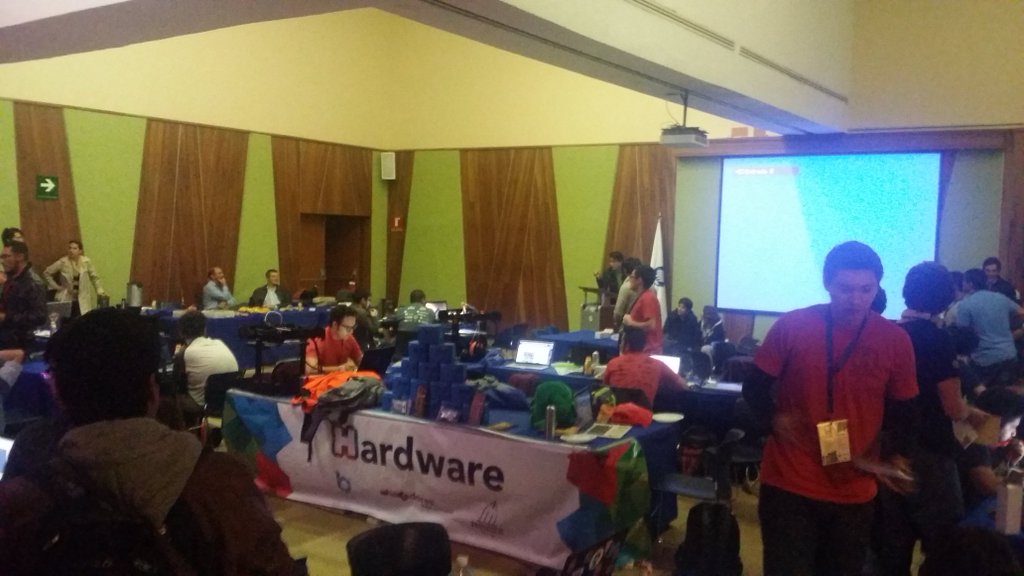 Pues llegue el viernes 13 (nunca he creído en la mala suerte hehe) al evento sin conocer a nadie, los organizadores y todo el staff eran bastante amable y procuraban que uno se sintiera cómodo en todo momento, ya una vez dentro de las instalaciones se respiraba un aire muy parecido al de un evento en campus party, pequeños grupos hablando sobre tecnología, personas presentándose y hablando un poco acerca de lo que hacen, un par de impresoras 3D en el centro haciendo modelos, etc. rápidamente me integre a uno de los grupos, me presente y comenzamos a platicar acerca de que les parecía el evento, en que programaban, que frameworks manejaban, hardware y demás cosas en lo que empezaba oficialmente el evento.